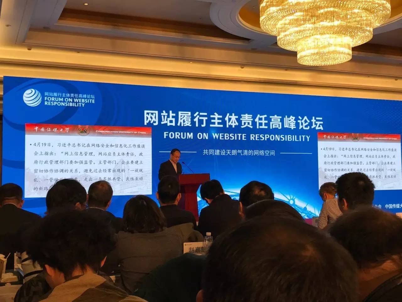 12月27日,由中國互聯網發展基金會和中國傳媒大學主辦的網站履行主體責任高峰論壇在京舉行。圖為論壇現場。